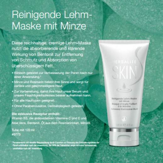 Die exklusive Rezeptur enthält: Vitamin B3, die antioxidativen Vitamine C und E, Aloe Vera, Bentonit, Öl aus dem Rosmarinblatt und Minzöl.
